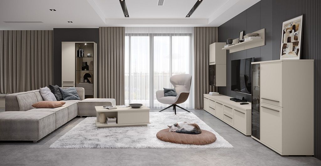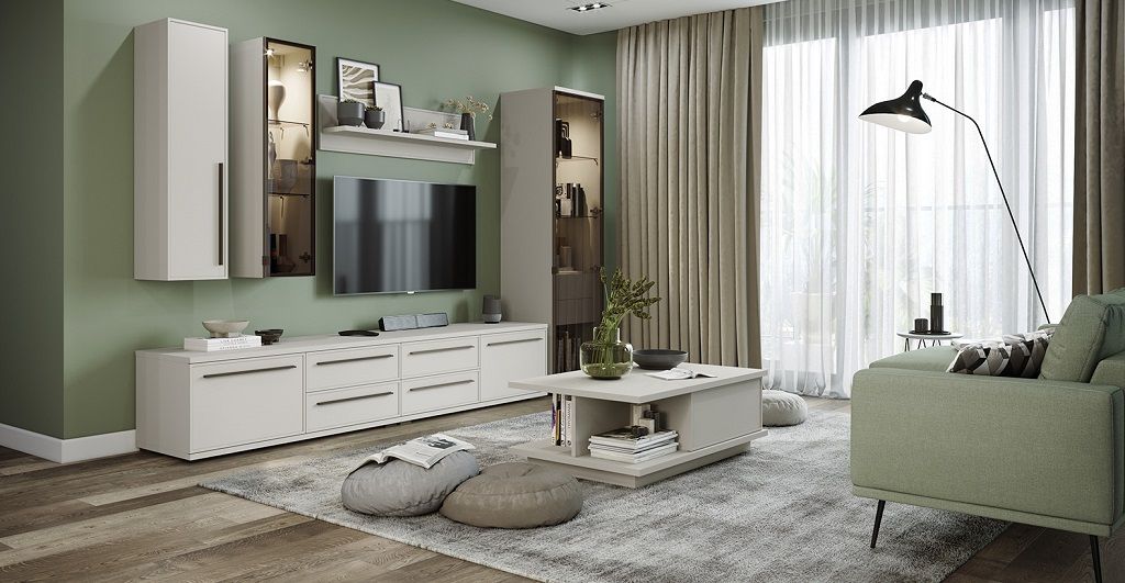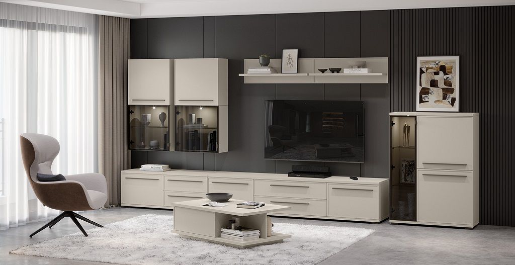 Površina pohištva je lakirana z UV lakom v subtilni kašmir barvi z mat finišem, kar zagotavlja brezčasno lepoto in eleganten izgled. Steklena vrata, obdana z aluminijastim okvirjem in zastekljena s parsol steklom, dodajo prefinjenost, medtem ko robustna izdelava iz kakovostnih materialov zagotavlja dolgo življenjsko dobo. S sistemom mehkega zapiranja so vsi elementi iz serije Opera zasnovani za udobje in dolgotrajno uporabo. Ročaji v moderni Cortado rjavi mat barvi so še en estetski poudarek, ki zaokroža celoten videz tega regala.
