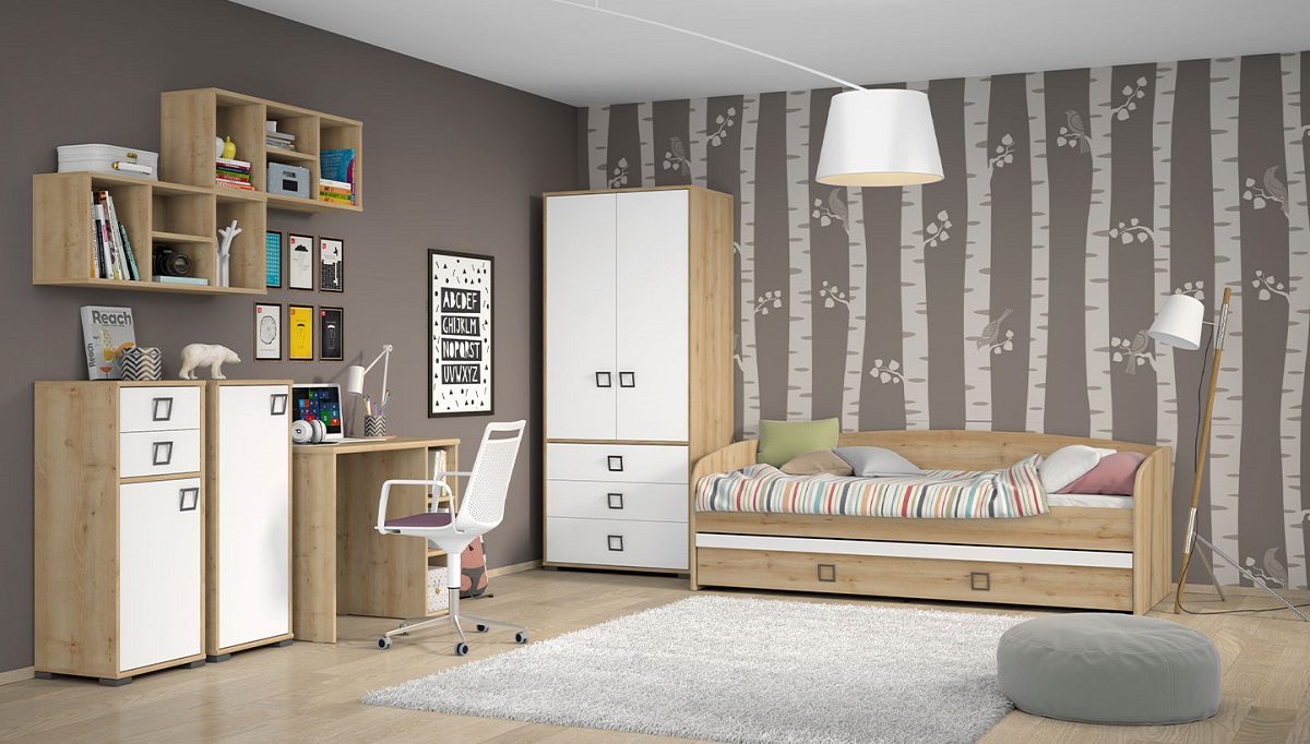 Otroške sobe Jela so med najbolj priljubljenimi zaradi svojega brezčasnega dizajna in odličnega razmerja med ceno in kvaliteto. Program Kiki, ki ga ponuja Jela, je na voljo v dveh lesnih odtenkih in dveh barvah front, kar omogoča prilagodljivost vsakemu prostoru. Poleg tega se vse postelje dobavijo s posteljnim dnom, kar poenostavi nakup, saj vse, kar potrebujete, je ležišče. S tem programom boste lahko svojemu otroku zagotovili kakovosten prostor za spanje in igro.