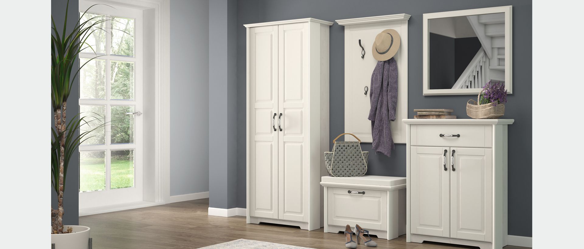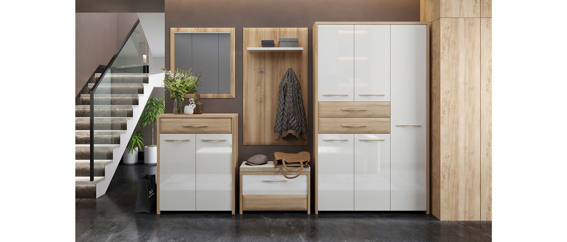 Shranjevanje je ključnega pomena v predsobi, saj ta prostor pogosto služi kot odlagališče za čevlje, plašče, torbe in druge predmete. Razmislite o naslednjih kosih pohištva: