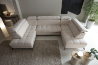 Sedežne garniture Lago so pravi izbor za vse, ki iščejo popolno kombinacijo estetike in praktičnosti. Moderna zasnova s kovinskimi nogicami poudarja njihov eleganten videz, hkrati pa zagotavlja stabilnost in vzdržljivost. Vse sedežne garniture iz serije Lago so opremljene z ležiščem in prostornim predalom ali dvema. Nastavljivi vzglavniki so dodani brez dodatnega doplačila. Sedežne garniture Lago omogočajo spremembo globine sedišča, prav tako brez doplačila. Odločite se lahko za garnituro v L ali U obliki. Izbirate lahko med šestimi različnimi oblikami in dimenzijami.
