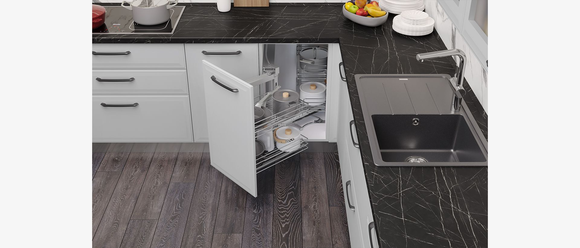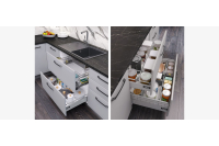 Poleg estetskega videza je funkcionalnost ena izmed najpomembnejših lastnosti kuhinje Evia. Pametno zasnovani predali, prostorne omarice in ergonomsko oblikovani delovni površini poskrbijo, da je kuhanje in shranjevanje živil preprosto in udobno. Vsak element je premišljen tako, da maksimizira uporabnost in učinkovitost.