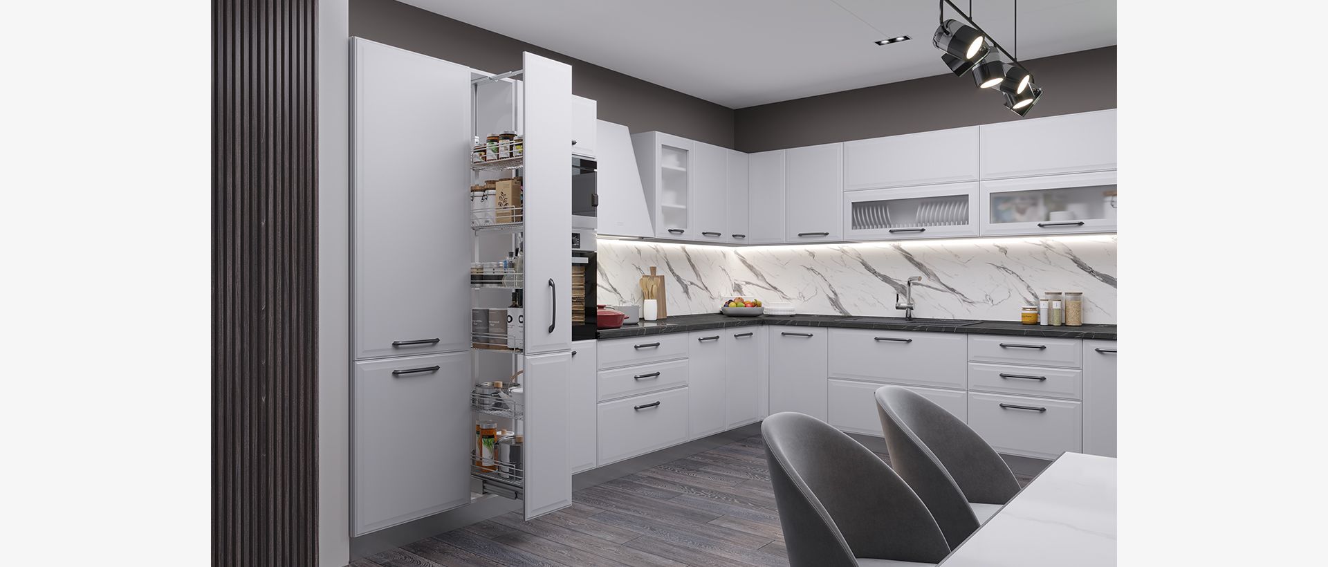 Kuhinja Evia združuje sodoben dizajn z brezčasno eleganco. Čiste linije, minimalistični detajli in premišljene barvne kombinacije omogočajo, da se ta kuhinja lepo vklopi v vsak dom. Ne glede na to, ali imate radi klasičen ali moderen stil, bo kuhinja Evia zagotovo izpolnila vaša pričakovanja.
