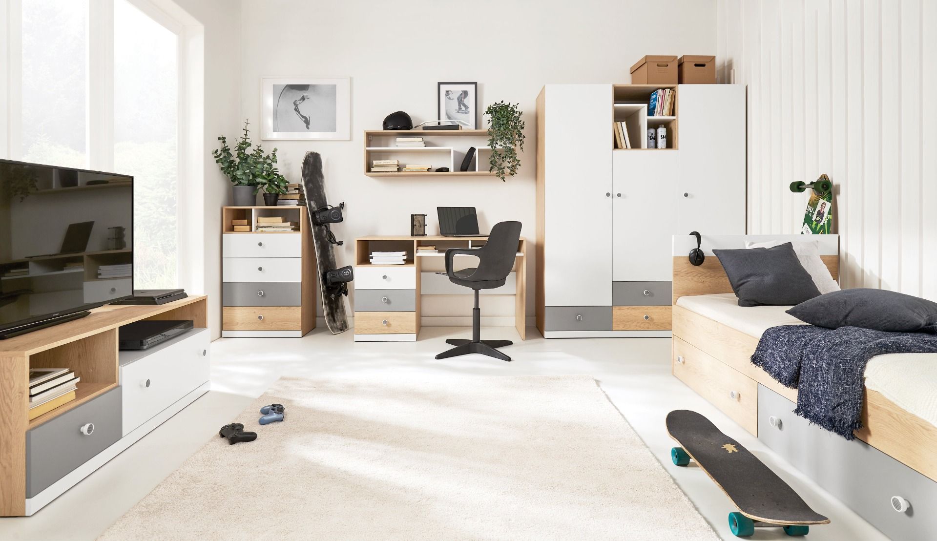 Mladinska soba potrebuje večnamensko pohištvo, ki omogoča različne dejavnosti. Ključno je imeti: