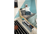- Mladinska soba Step je zasnovana tako, da združuje udobje in funkcionalnost. Postelje so udobne in ergonomsko oblikovane, omare ponujajo dovolj prostora za shranjevanje oblačil in drugih predmetov, pisalne mize pa omogočajo udobno delo in učenje.