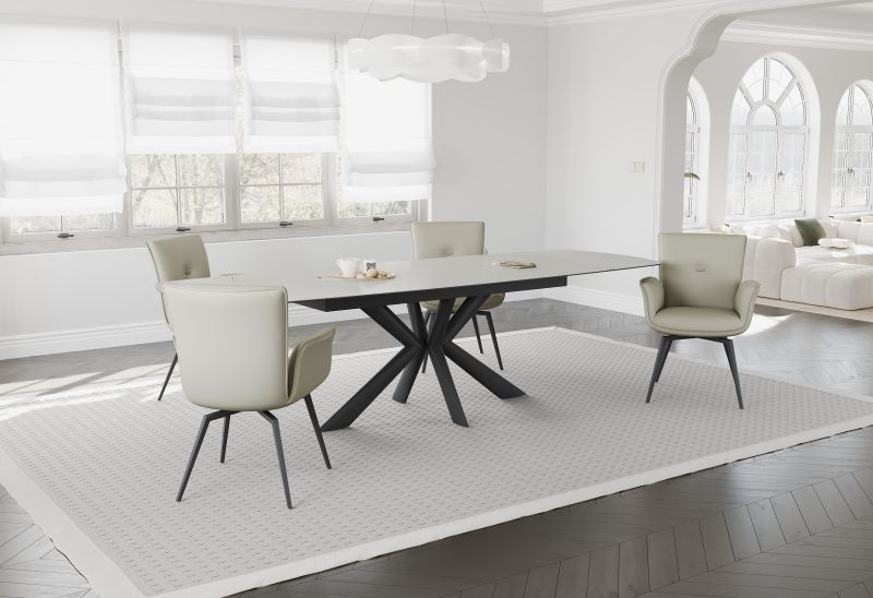 Poleg tega vrtljivi stoli izboljšajo pretočnost prostora. Obračanje proti sogovorniku, otrokom ali kuhinjskemu pultu je naravno in udobno, brez premikanja celotnega stola.