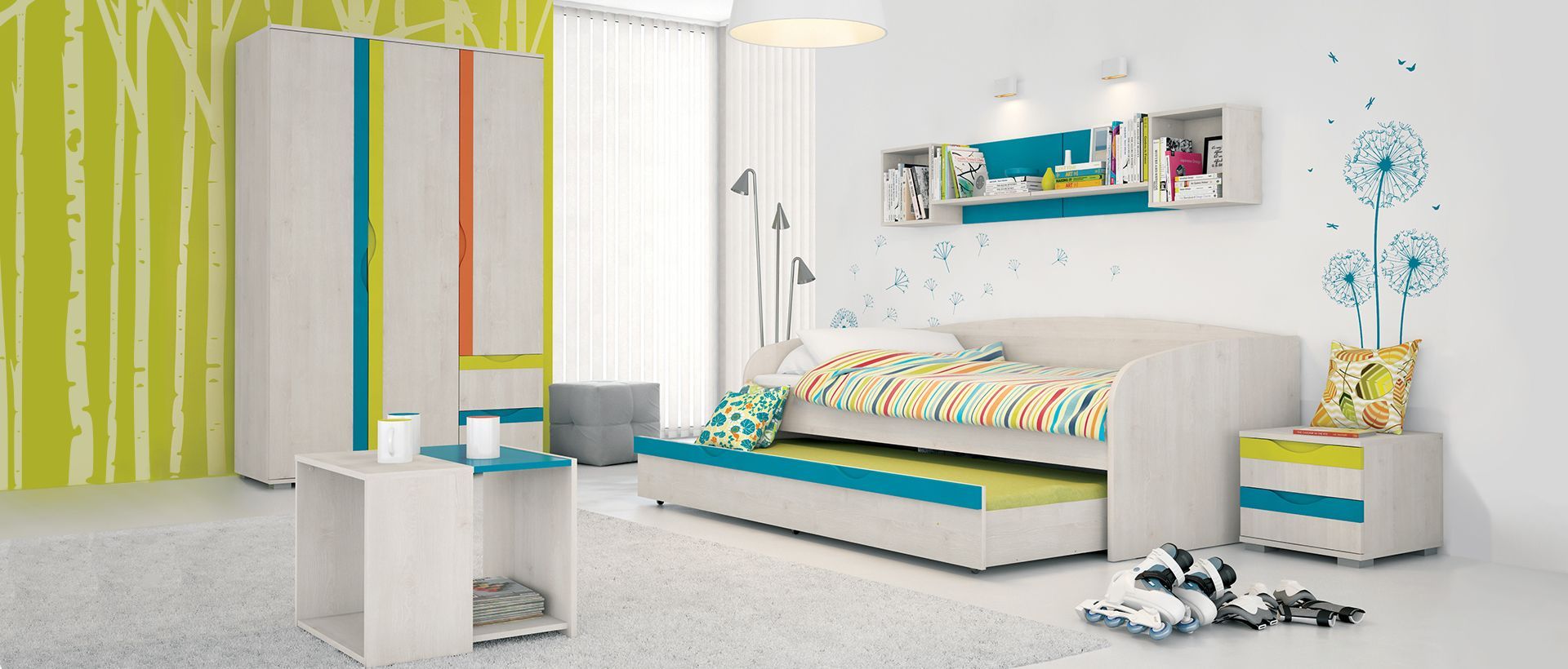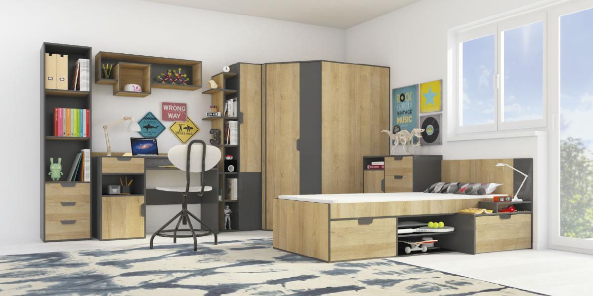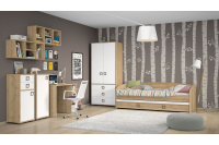 Seveda moramo za otroka načrtovati tudi prostor za ustvarjanje in kasneje za učenje. Pisalna miza in kvaliteten pisarniški stol otroku omogočata udobno namestitev ob ustvarjanju/učenju. Z dobrim okoljem v otroški sobi otroka dodatno motiviramo in mu pomagamo pri učenju. V kolikor je v sobi več kot 1 otrok, je dobro, da priskrbimo pisalno mizo za vsakega otroka. S tem ima vsak otrok svoj prostor kjer lahko opravlja domačo nalogo in se uči. | ![]() |