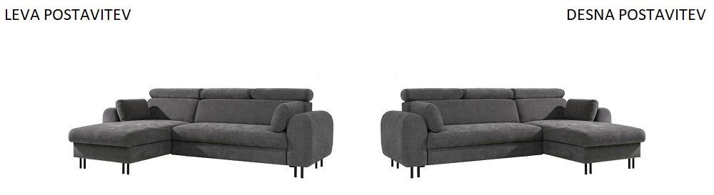 Sedežna garnitura PORTO 2 je odlična izbira za vse, ki iščejo kombinacijo udobja, funkcionalnosti in modernega dizajna. S svojim elegantnim videzom in praktičnimi lastnostmi bo vaš dnevni prostor dvignila na nov nivo. Sedežna garnitura Porto je na voljo v dveh dimenzijah. Izbirate lahko med manjšo različico katera je širine 252cm, globine 171cm in višine 98cm. Porto 2 pa je večja varianta garniture z dimenzijami 256x194cm. Obe sedežni garnituri se raztegneta v udobno ležišče, pod manjšim krakom garniture pa se nahaja prostoren predal za shranjevanje posteljnine ali drugih potrebščin. Izbirate lahko med levo in desno postavitvijo sedežne garniture, odvisno od potreb vašega prostora.