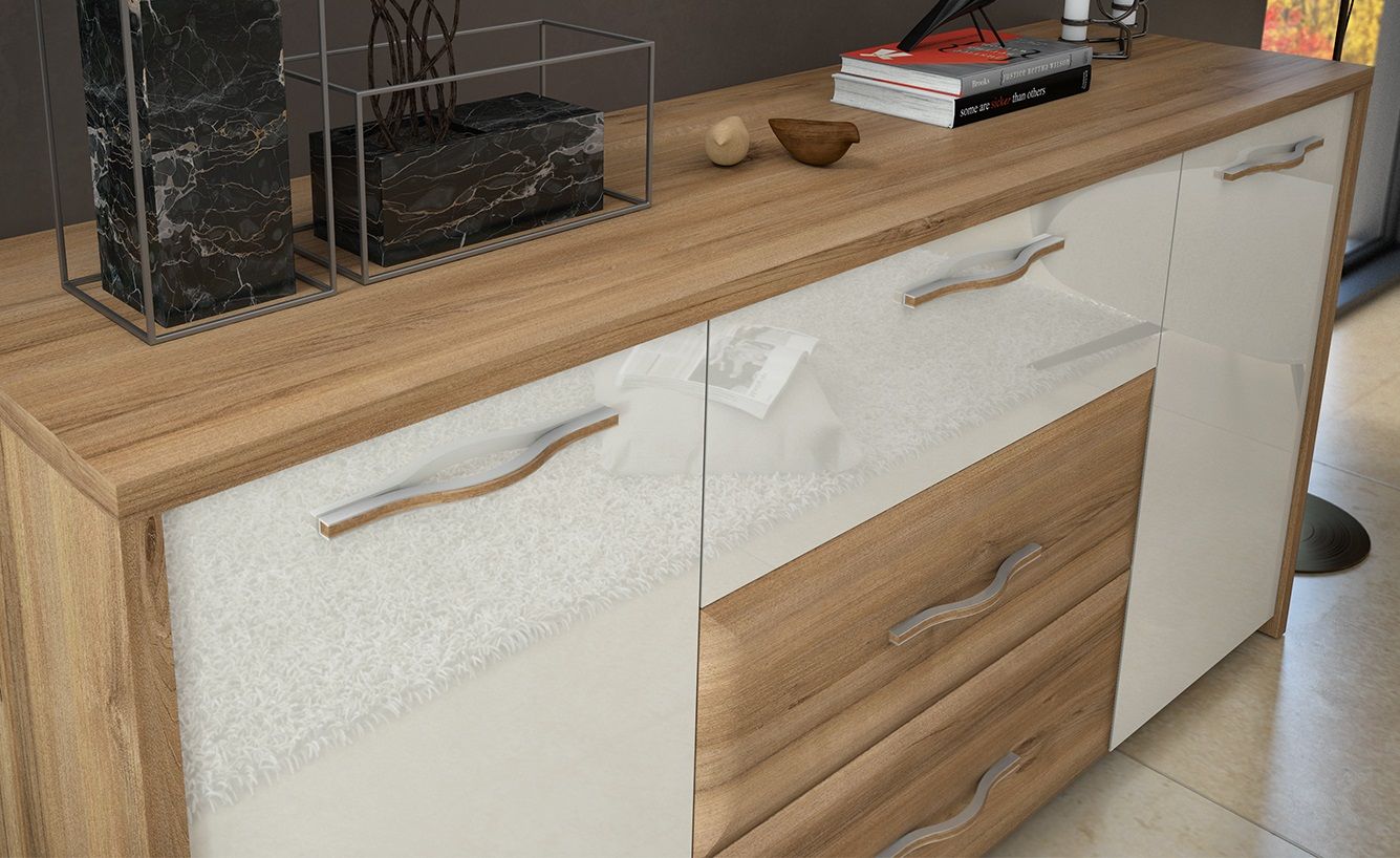 Komode: V kolikor potrebujete več prostora za shranjevanje kot le omaro, lahko izderete tudi komode iz serije Gala. Komoda nudi dodatno shranjevalno površino za osebne predmete, dokumente ali dekorativne elemente.