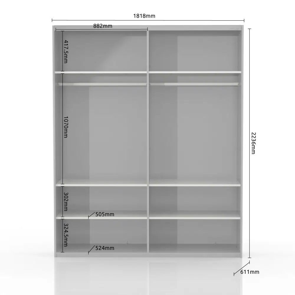 Drsna omara 180cm iz pohištvene serije Opera. V notranjosti omare se nahaja šest polic in dve obešalni palici. Moderna umetnost - to je pohištvo Opera, ekskluzivna kolekcija proizvajalca Jela, ki jo navdihuje eleganten in prefinjen dizajn. Topla barva in mirna oblika kolekcije Opera bosta popestrili različne prostore vašega stanovanja. Poleg modernega dizajna so pri podjetju Jela poskrbeli tudi za odlično kvaliteto, funkcionalnost in modularnost. Pohištveni elementi Opera so kvalitetne izdelave, izdelani iz 18mm univerja. Robovi so zaključeni z Rehau robnim trakom. Zunanjost pohištvenih elementov je lakirana z UV lakom v nežni soft mat kašmir barvi. Notranjost je v zanimivem tekstilnem dekorju. Ročaji v rjavi Cortado barvi s svojim toplim odtenkom lepo poudarjajo videz celotne kolekcije. Vsi elementi iz serije Opera so opremljeni s sistemom mehkega zapiranja.