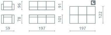 Dimenzije (š/g/v): 197 x 101 x 91 cm.