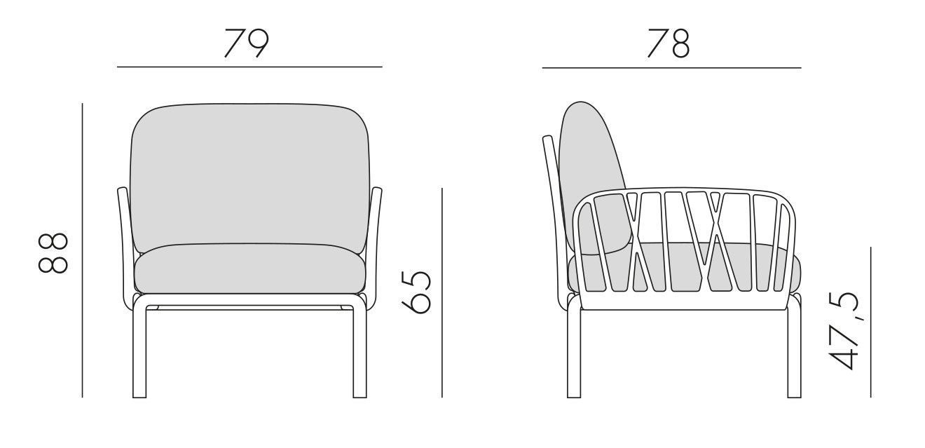 Fotej Komodo v Tortora barvi, vrhunskega italijanskega proizvajalca vrtnega pohištva NARDI. Sproščujoč fotelj primeren za zunanjo uporabo. Kvalitetni UV obstojni materiali poskrbijo za dobro in dolgo obstojnost na vremenske vplive. Fotelj je na voljo ločeno ali konfigurirano kot sestavni element večjih garnitur. Modularni sistem oblazinjenih sedežev Komodo nam omogoča neomejeno število možnosti. Fotelj je izdelan iz enakomerno obarvane polipropilenske smole iz steklenih vlaken. Površina fotelja je matirana in je prijetna na otip. Blazine so vključene v setu in imajo snemljivo prevleko. Bogata debelina blazin poskrbi za udobno sedenje. Blazine na naslonu so debeline 18cm, na sedalu pa 22cm. Možna je kombinacija različnih elementov iz serije KOMODO, tako da si lahko ustvarite poljubno sedežno garnituro.