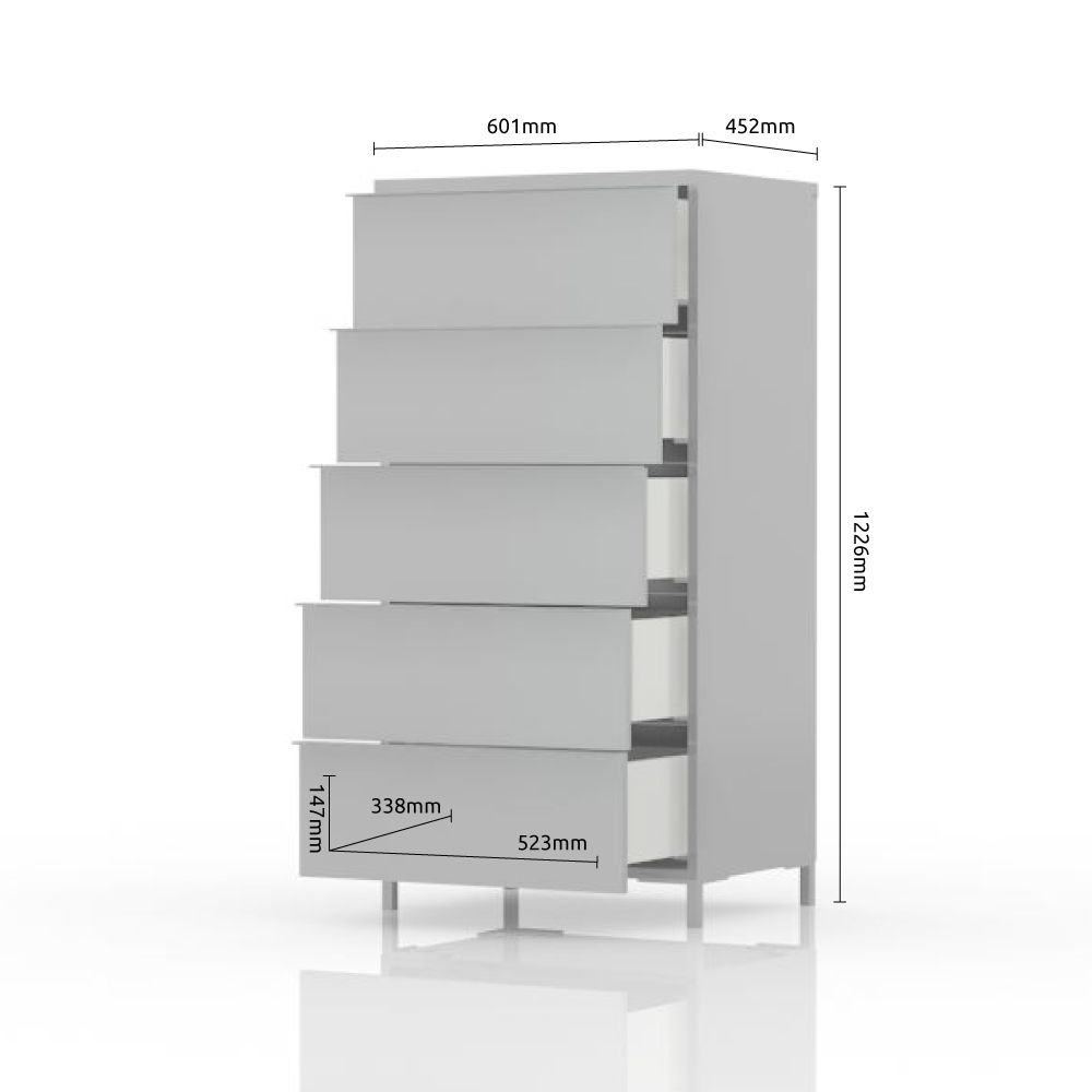 Predalnik s petimi predali iz kolekcije ONYX, na voljo v antracit barvi visokega sijaja z dodatkom lesnega dekorja. Dimenzije: 60x123x45 cm.
