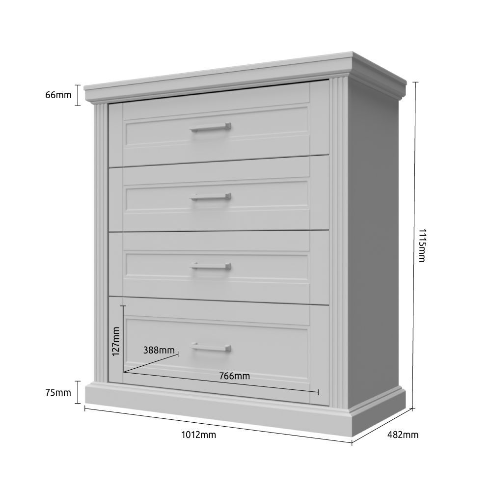 Predalnik s štirimi predali iz pohištvene serije TARA. Komoda je kvalitetne izdelave in rustikalnega videza. Štirje prostorni predali nudijo veliko prostora za shranjevanje. Kolekcija TARA je elegantnega videza z rustikalnimi dodatki. Pohištvo je kvalitetne izdelave, izdelano pri priznanem podjetju Jela. Pohištvena serija je na voljo v moderni grafitno sivi ali umirjeni beli v kombinaciji z lesnim dekorjem. Serija je primerna za vsak prostor, kjer želite vnesti moderno pohištvo s pridihom klasike. Po želji lahko element kombinirate z ostalimi elementi iz pohištvene serije Tara. Vso pohištvo iz serije Tara je opremljeno s sistemom mehkega zapiranja.