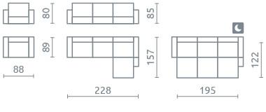 Dimenzije(š/g/v): 228 x 157 x 85 cm.