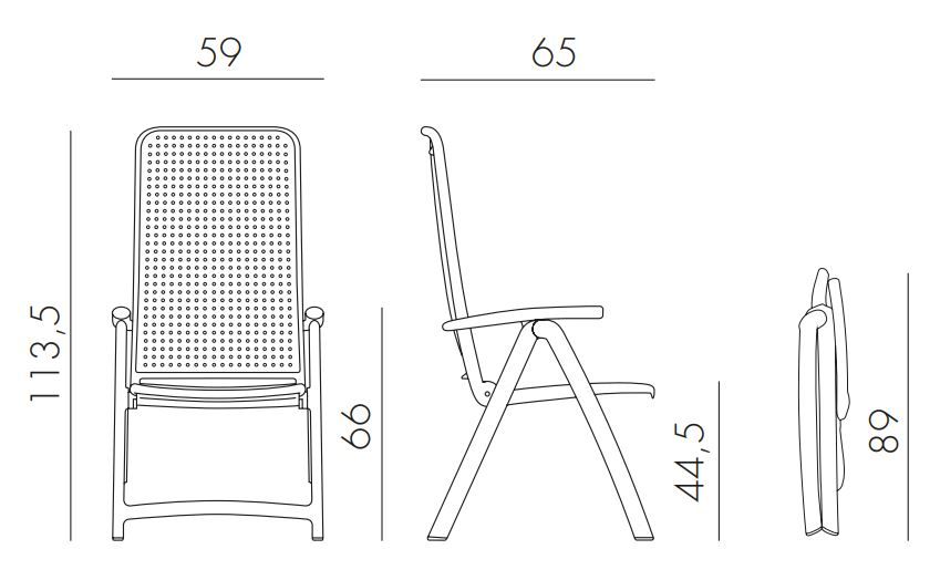 Vrtni počivalnik DARSENA proizvajalca NARDI. . Stoli so zložljivi izdelani iz enakomerno obarvanega polipropilena, kateremu so dodani UV dodatni, ta boljšo UV odpornost. Površina stola je matirana in je prijetna na otip. Noge stola so opremljene s proti drsnimi čepi. Njegov visok hrbtni naslon lahko prilagodimo v štiri položaje.
