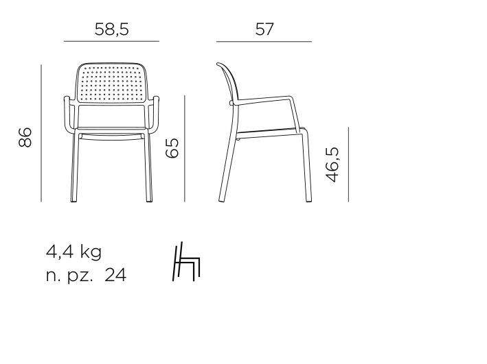 Vrtni stol BORA v prijetni tortora barvi, proizvajalca NARDI. Kvaliteten vrtni stol iz steklenih vlaken z mat površino in je prijetnostjo na otip. Stol je izdelan iz enakomerno obarvane polipropilenske smole, kateri so dodani UV dodatki za boljšo UV obstojnost. Izdelan je v obliki monobloka - v enem kosu, kar stolu zagotavlja dobro stabilnost in trpežnost, saj je stol brez spojev. Za dodatno stabilnost stola so noge stola opremljene s proti drsnimi čepi.